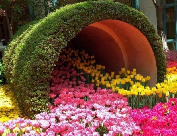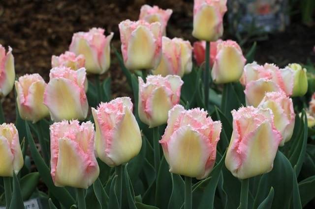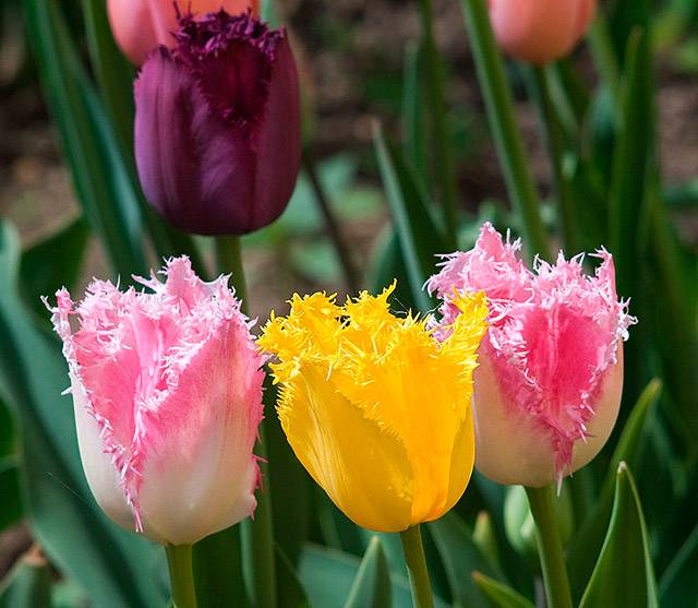 - Seguint les regles per formar un parterre, cal distribuir correctament els bulbs per la zona preparada, tenint en compte la varietat, el color i l’alçada de la planta. Les tulipes altes es planten millor al centre i les curtes al voltant de les vores, de manera que les flors més grans no bloquegin la llum solar necessària en varietats més petites.