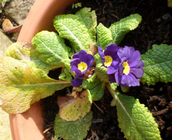 Per evitar l'alcalització del sòl a l'olla, que afecta de manera depriment la prímula, cal afegir quelat de ferro un cop al mes en regar, segons les instruccions de preparació.