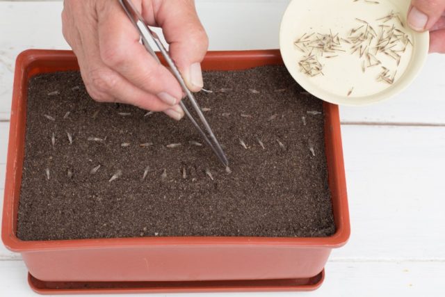 El més convenient és utilitzar un recipient ample i poc profund (capsa de fusta, contenidor de plàstic) per sembrar llavors. Un requisit previ és la presència d’un nombre suficient de forats al fons del recipient per drenar l’excés d’humitat.
