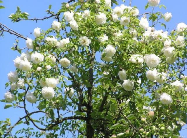 És molt fàcil per a un roser marcar la direcció correcta, per això la varietat Iceberg és tan apreciada pel disseny de paisatges. Les fotos de composicions amb roses enfiladisses són molt expressives.