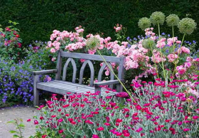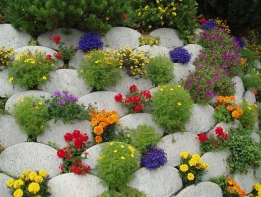 - parterres de flors de diversos nivells, fronteres mixtes, turons rocosos;