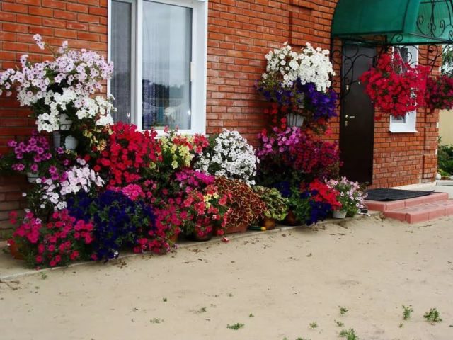 Podeu instal·lar un jardiner amb petúnies a prop de la porta. Decoraran perfectament l’entrada de la casa.