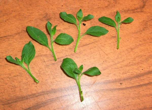 La petunia tallada comença a finals de febrer. Els esqueixos de 10 cm de longitud es tallen des de la part superior dels arbusts uterins, deixant-hi un parell de fulles superiors i es redueixen a la meitat.