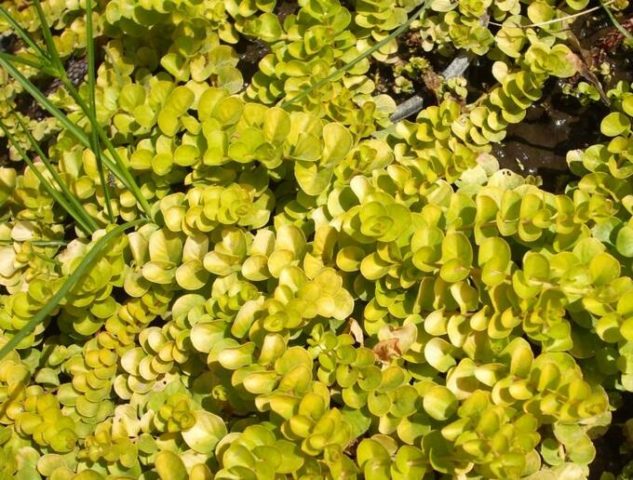 La varietat Aurea és una planta ornamental amb fulles verdes i daurades de color groc clar. Una planta perenne és capaç de formar una cobertura baixa al sòl fins a 5-15 cm sobre el nivell del terra i fins a 30 cm d’amplada. Aurea té una floració groga típica que dura uns 20 dies de juny a agost.