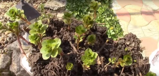Després d’eliminar la planta del sòl i dividir-la en diverses parts, es planta juntament amb la massa terrosa que queda.