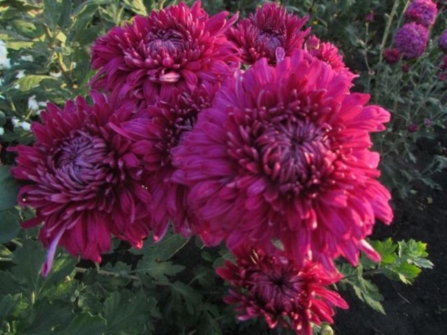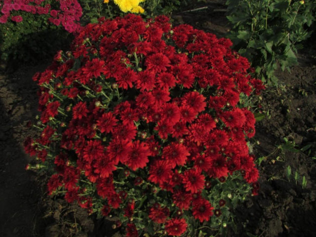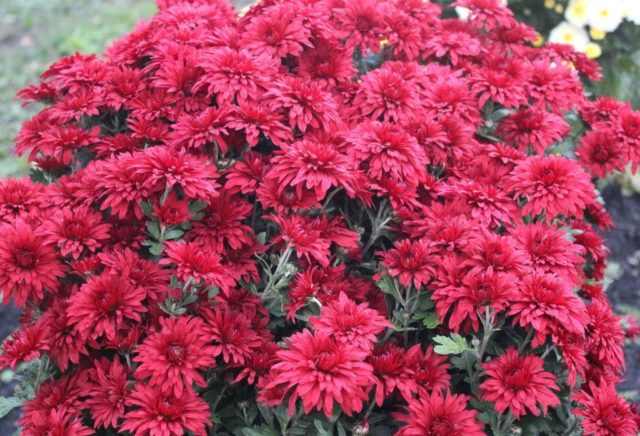Un bonic crisantem madur primerenc anomenat Viscosa Vermella entra al període de màxima decoració al setembre. Les flors de la varietat són similars a la camamilla, de color lila fosc amb una vora blanca brillant al voltant de les vores.