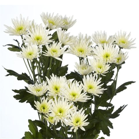 Una altra varietat primerenca anomenada Deliana White floreix a principis de mitjans de setembre amb grans cabdells blancs. En forma, les inflorescències no són rodones, sinó que són pètals prims i semblants a agulles que divergen lleugerament del centre i es precipiten verticalment cap amunt.