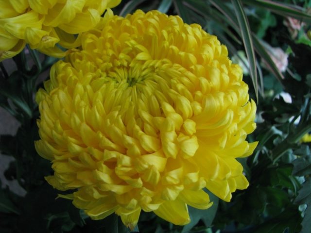 El crisantem alt creix fins a 95 cm sobre una tija resistent. Les inflorescències d’una varietat anomenada Bomber Green són esfèriques, de color verd i, per això, criden l’atenció a l’instant. Una flor perenne a mitjan tardor; en el fons del fullatge groc i vermell al jardí, pot semblar molt impressionant.