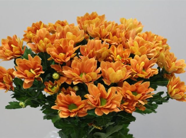 Els crisantems decoratius amb cabdells petits poden no semblar tan espectaculars com els grans. Però el seu avantatge rau en la floració abundant i la llarga conservació després del tall.