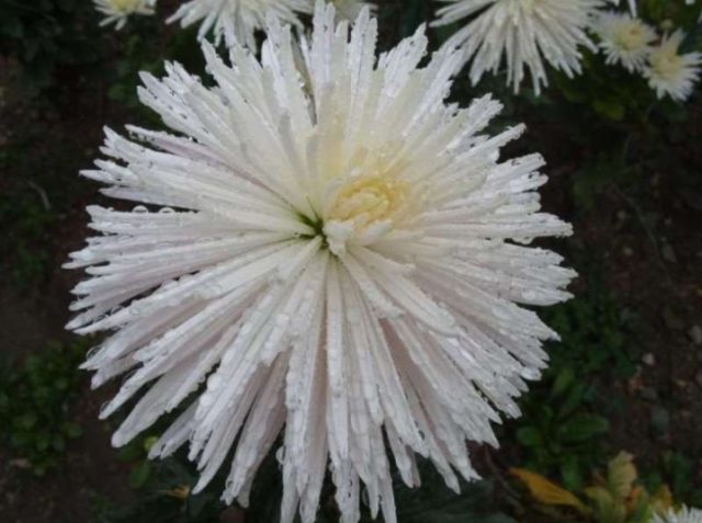 La varietat de flors grans anomenada White Star s’eleva fins a 80 cm sobre el sòl. A finals d’octubre, porta inflorescències blanques de forma radial, els cabdells poden arribar a fer 12 cm de diàmetre. La planta perenne és molt bonica, però presenta un cert inconvenient: la seva tija és fràgil i es pot trencar.