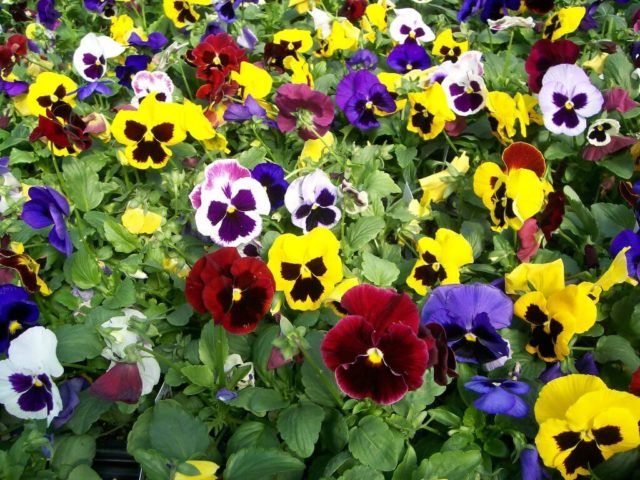 Els gegants suïssos de la viola són un excel·lent exemple de plantes ornamentals que combinen bé amb altres plantes perennes. Les composicions expressives es componen de pensaments, plantats en un part de flors en grans quantitats. Creen una preciosa catifa de pètals multicolors i fullatge verd. Per fer-la més eficaç, podeu diluir la plantació de violetes tricolors amb cultius de floració primerenca, com ara arbres o espines.