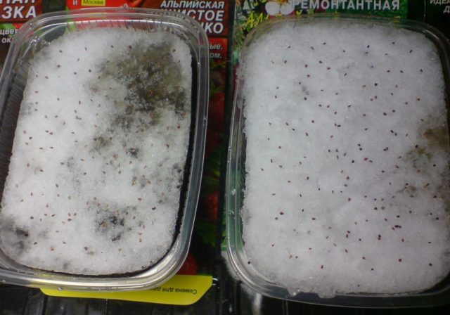 El més destacat és que la neu s’estén per sobre i s’hi aboquen grans. Tan bon punt es fon, les llavors de la perenne Aubriet cauran al sòl fins a la profunditat desitjada. Després, el recipient es segella i es col·loca en un lloc càlid.