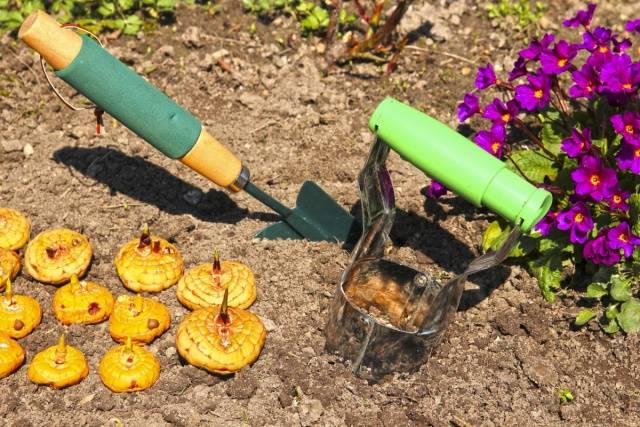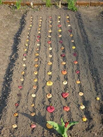 La profunditat del solc de plantació depèn de la mida del bulb. No cal enterrar massa els tubercles, cosa que pot provocar una floració posterior. El terreny s’ha d’escalfar bé: és òptim si la temperatura del sòl és superior a 8 graus a una profunditat de 10 cm.