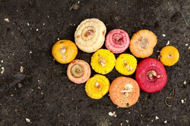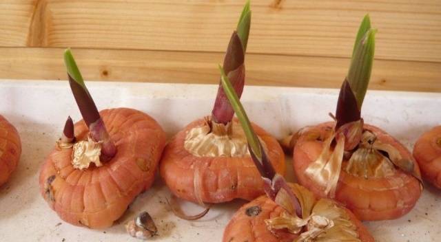 Després de la separació, els tubercles i els nadons amb flors es tracten amb un desinfectant (es pot utilitzar permanganat de potassi) i s’assequen bé. Els bulbs ja estan preparats per plantar-los a l’aire lliure.