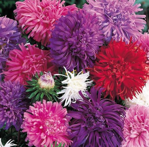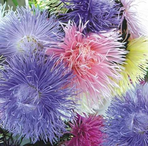Els asters de canya anuals es caracteritzen per una floració de luxe especialment memorable. L’estructura de les inflorescències és acicular, semiesfèrica, esfèrica, enrajolada, arrissada. Les més populars entre les floristeries són les següents varietats d’aster canyes: