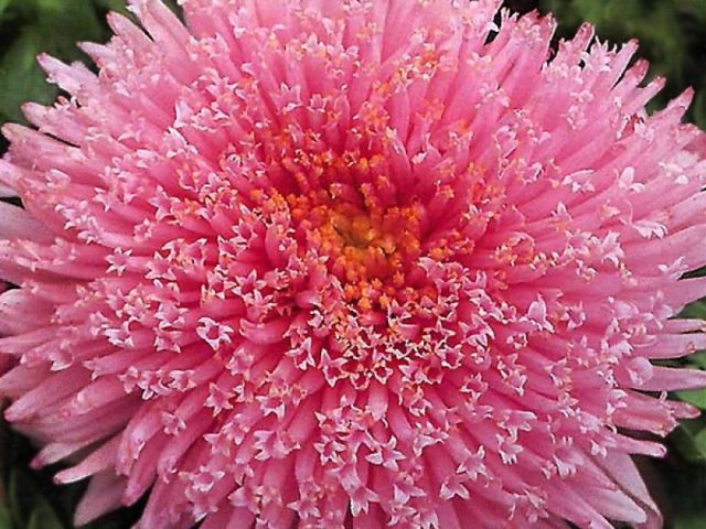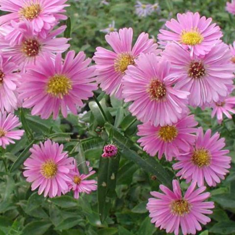 Inflorescències roses refinades d'asteres tubulars anuals "Patricia Ballard" amb un diàmetre de fins a 3 mm delecten amb floració salvatge gairebé abans de l'aparició de les gelades