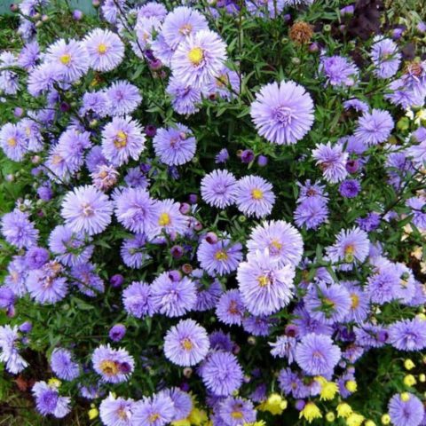 - Agulla "Novetat" - Una varietat millorada d'aster anual amb dobles inflorescències. L'alçada de la mata és de fins a 50 cm.