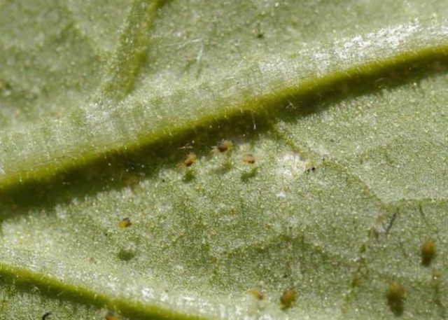 - Àcar ataca les plantes quan fa calor. Apareix una tela marró a la part inferior de les fulles, al cap d’un temps s’assequen i es marceixen. Com a tractament, s’utilitza una infusió de tapes de ceba, all, dent de lleó, milfulles i patates. La polvorització es duu a terme 2-3 vegades cada 5 dies.