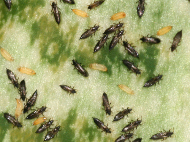 Els òrgans bucals xucladors dels trips són nítids, diversos parells de potes tenen dents característiques als extrems