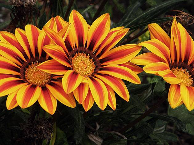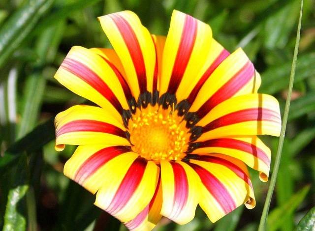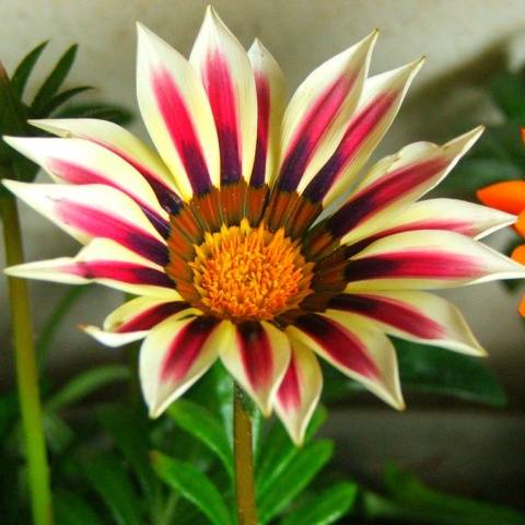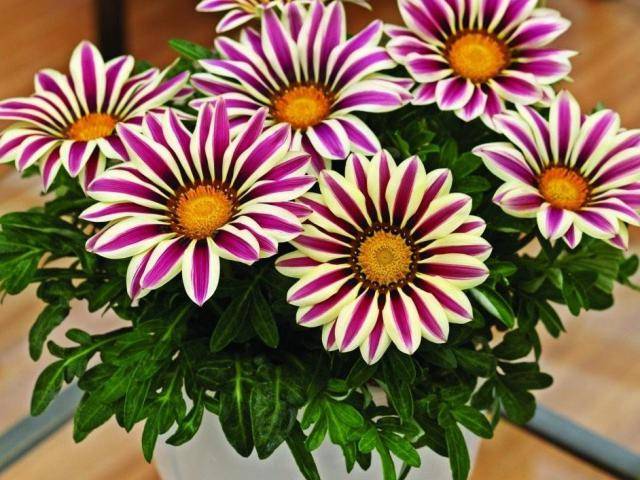Gatsania ... Aquesta flor curta però molt bonica té diversos noms. Gazania va rebre el nom del científic grec Teodoro Gaze. El nom de "camamilla africana" i "Sol del migdia" va rebre la flor a la seva terra natal, a l'Àfrica. De fet, Gatsania desplega els seus pètals amb els primers rajos del sol i els tanca a la caiguda de la nit.