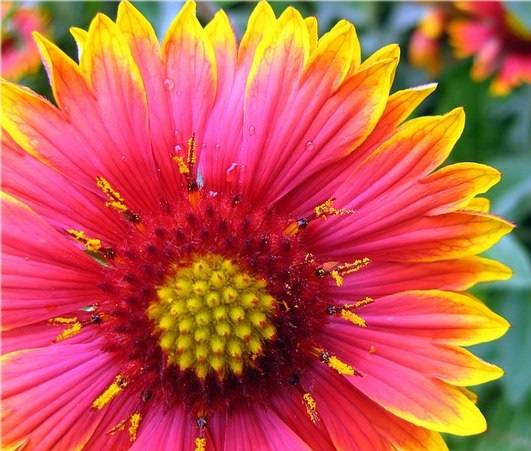 Brillant | fins a 30 | 4 — 6 | vermell fosc, groc assolellat taronja brillant | Les bases dels pètals són negres o vermells |