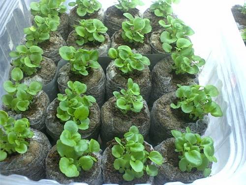 En el moment en què les arrels comencen a anar més enllà de la malla de paper, les plàntules es col·loquen directament amb la pastilla en un lloc permanent o es col·loquen en un recipient més gran, cobert amb terra addicional i creixent encara més. No hi ha cap trauma al sistema radicular, ni estrès ni, com a conseqüència, cap retard de creixement.