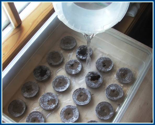 Cal preparar algun tipus de recipient profund, preferiblement amb tapa o sense. Les caixes de pastissos o pastissos transparents són ideals. A la venda també podeu trobar kits ja fets per al cultiu de plàntules en pastilles de torba, que són una safata amb cel·les per a la mida de les tauletes i una tapa.