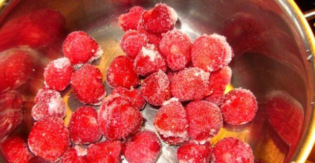 Preparació pas a pas de compota de maduixa congelada: