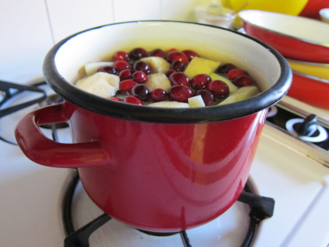 - Al cap d’un temps especificat, s’aboca el líquid en una cassola i s’hi afegeix sucre i àcid cítric. Bullir la compota durant 5 minuts.