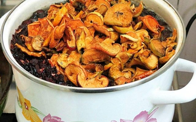 - Remullar les fruites seques (peres i pomes) en aigua tèbia durant 15 minuts. Després del drenatge, aboqueu líquid fresc, poseu-ho al foc.