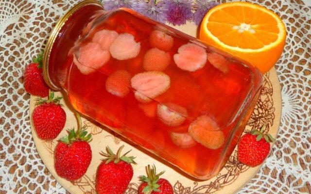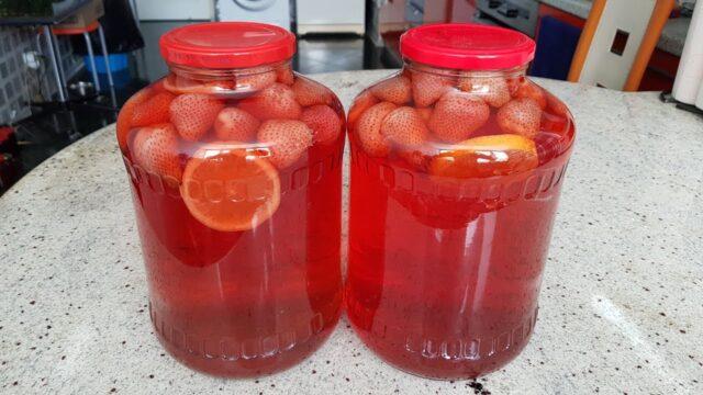Es tracta d’una versió clàssica de la preparació de compotes, que combina amb èxit la dolçor de les maduixes i la lleugera acidesa d’una taronja. El resultat és una beguda amb un ric aroma i un sabor agradable.
