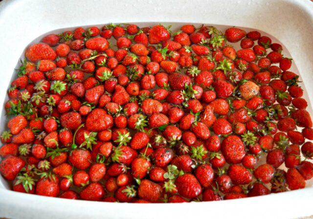 Les maduixes també necessiten una preparació prèvia. Les baies s’han de netejar inicialment de sèpals i després baixar-les durant uns minuts en una àmplia conca plena d’aigua. Després d’això, traieu i col·loqueu ràpidament un colador perquè els fruits s’assequin lleugerament.