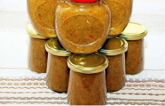 Coeu adjika durant 5-10 minuts i aboqueu-la en pots estèrils. Suro, gireu-ho i deixeu-lo refredar. Embolicar els pots ajuda a allargar aquest procés. En aquesta forma, l’adjika de prunes grogues s’emmagatzema bé en un lloc fresc durant molt de temps.