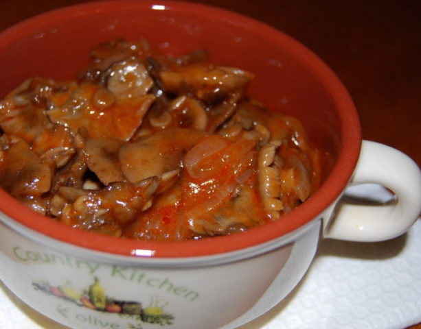 Ryzhiki en salsa de tomàquet amb pebre vermell