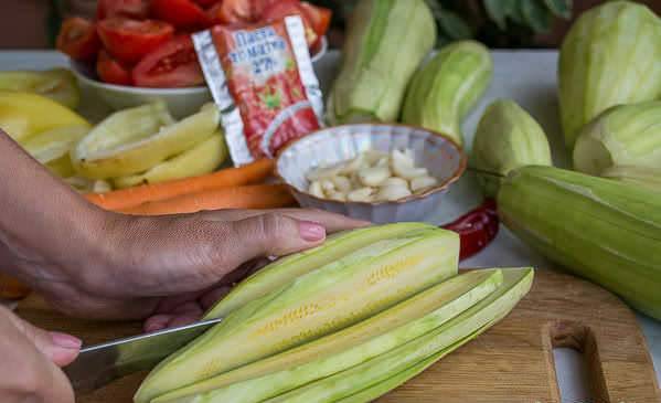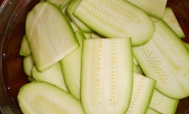 Al primer pas, els carbassons es pelen i es tallen a rodanxes adequades, per tant, podem dir que ja heu passat aquesta etapa.