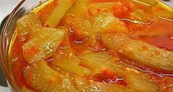 A continuació es mostra la recepta més clàssica d’aquesta amanida “llengua de la sogra” de carbassó per a l’hivern amb fotos detallades que il·lustren el procés de fabricació.