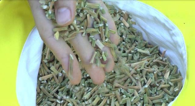 Les herbes seques es poden aixafar per crear un condiment de flux lliure. És millor guardar l’all verd sec en un recipient tancat.