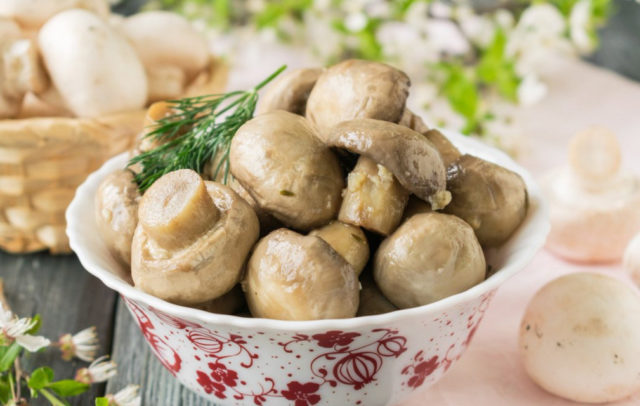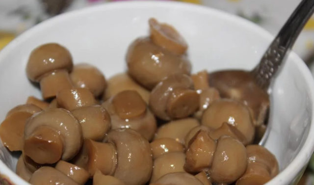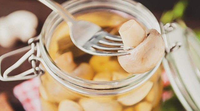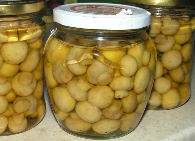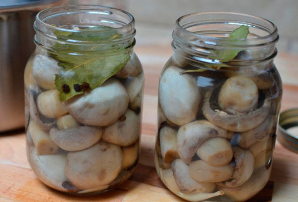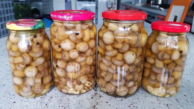 Els xampinyons es transfereixen als pots estèrils, abocats amb líquid picant calent. Després, s’ha de tancar el recipient amb tapes metàl·liques i deixar-lo refredar a temperatura ambient.