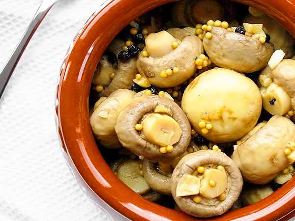 Com escabetxar xampinyons amb mostassa per a l’hivern en pots