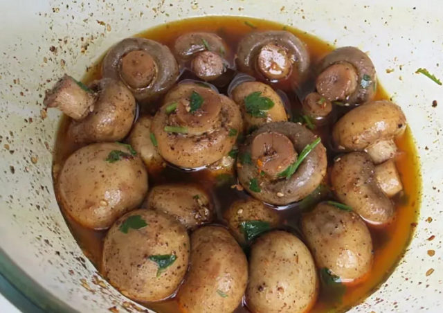 Passarà temps perquè els cossos fructífers estiguin ben saturats. Els xampinyons s’han d’adobar durant almenys 3-4 dies. Després absorbeixen el sabor picant. Els bolets es poden marinar molt més temps. Això farà que el seu gust sigui més intens.