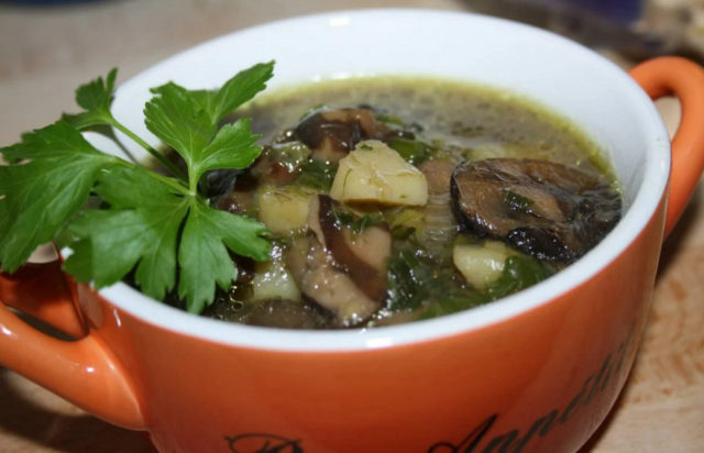 Recepta per a sopa a base de bolets de llet congelada i agàrics de mel