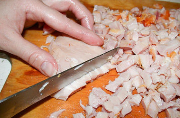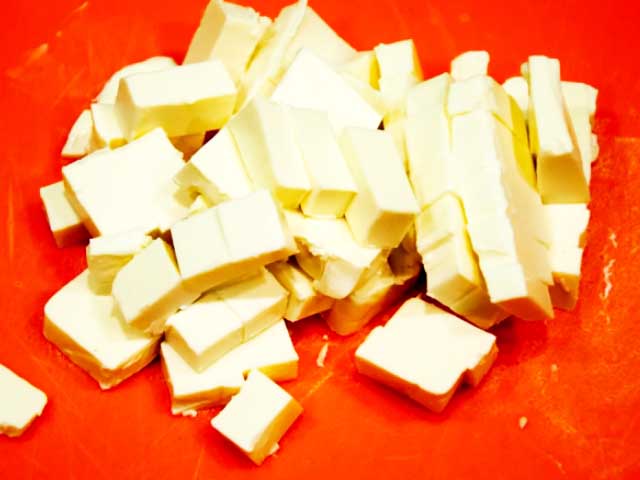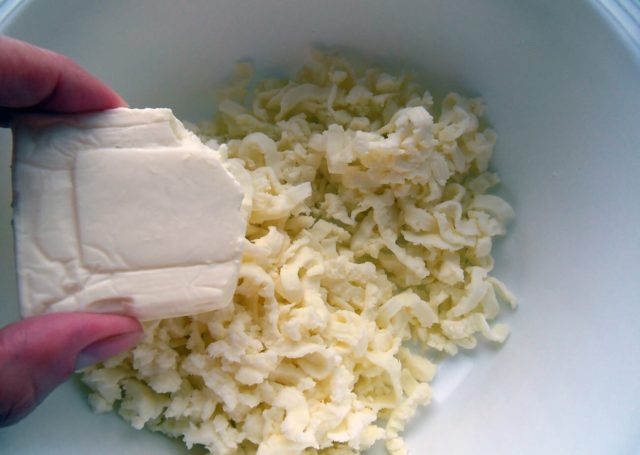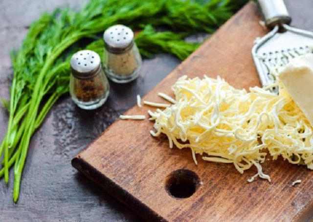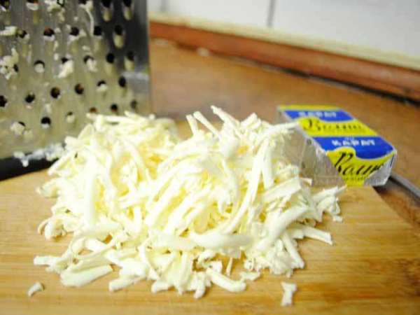 - el tros, que es ven en briquetes, que s’utilitza més sovint per preparar primers plats, es refreda i es trosseja sobre un ratllador gruixut;