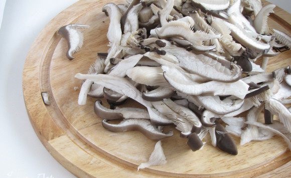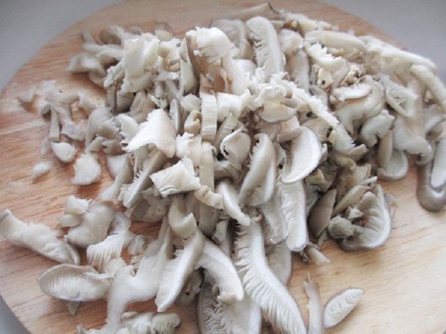 - Bullir els bolets d’ostra en aigua salada durant 15 minuts. Tallat a tires.
