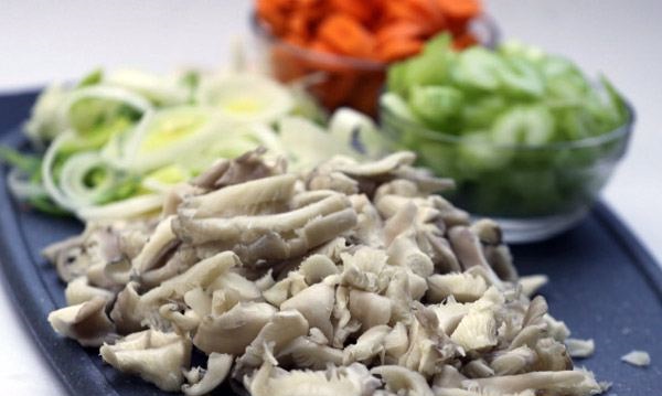 - Picar bolets d’ostra, pastanagues i ceba preparats.