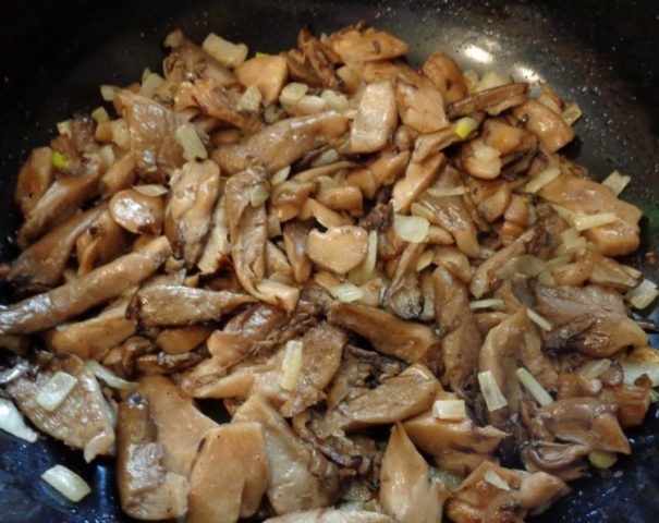 - Tritureu els bolets d’ostra preparats, fregiu-los amb mantega.