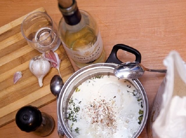 - Quan el brou bulli, afegiu-hi nata i vi sec.