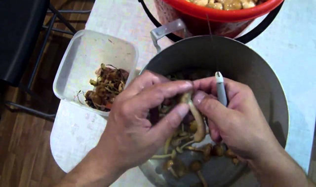Els bolets tractats es tornen a rentar i es col·loquen en un altre recipient amb aigua salada neta. Aquí haurien de mullar-se un altre dia. L’endemà, simplement es renten amb aigua corrent, ja no es netegen, s’utilitzen per cuinar.
