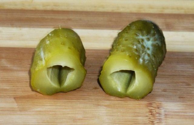 Si preneu cogombres grans o massa madurs, inevitablement quedaran buits a l’interior. Aquests fruits tenen una gran càmera de llavors que s’omple d’aire quan se salen. Però fins i tot els petits verds poden quedar buits si es recullen al migdia. Quan no hi ha cap altra opció, es remullen amb aigua durant 6-8 hores abans de coure-les. Per tant, estan saturats de la humitat necessària.