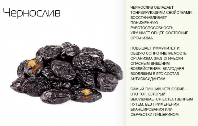 - la pruna seca és indispensable per a la deficiència de vitamines, la disminució del rendiment i la pèrdua de força;