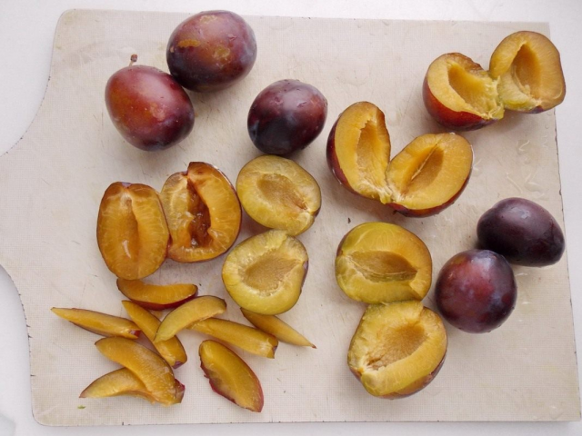 - talleu-lo per la meitat i traieu les llavors (si teniu previst collir prunes prunes sense elles, els fruits petits, per regla general, s’assecaran sencers).